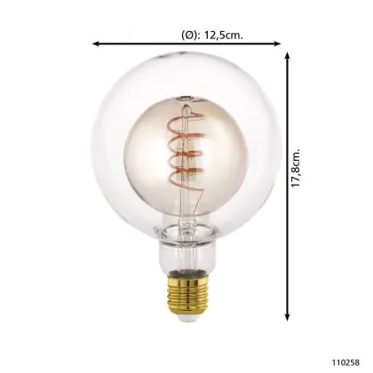 Beschrijving Eglo LED Globe E27 Filament Amber 4W 200lm - 820 Zeer Warm Wit | Dimbaar - Vervangt 25W