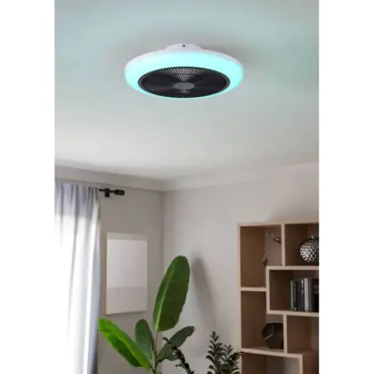 Beschrijving Eglo Plafondventilator Sayulita 1 ABS Wit, Zwart 25.3W 820lm - 827-865 Afstembaar Wit + RGB | Dimbaar