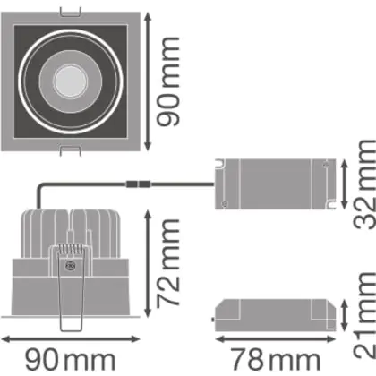 Beschrijving Ledvance LED Spot Vierkant Donkerlight Kantelbaar Wit 8W 650lm 36D - 830 Warm Wit | Zaagmaat 83mm