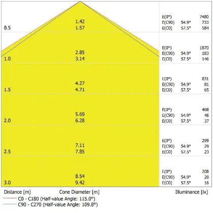 De lichtopbrengst (Lumen), geeft weer hoe krachtig het uitgestraalde licht is. Dit is belangrijk om te weten om de juiste sfeer te creëren. 0 tot 400 Lumen is bij uitstek geschikt voor accent- of sfeerverlichting. Een hoger aantal Lumen is, afhankelijk van de grootte van de ruimte, beter geschikt als ondersteunende- of basisverlichting. Heb je plafonds hoger dan 4 meter, dan is een lichtopbrengst van minimaal 8000lm aan te raden indien heldere verliching gewenst is (vb. in werkomgevingen).