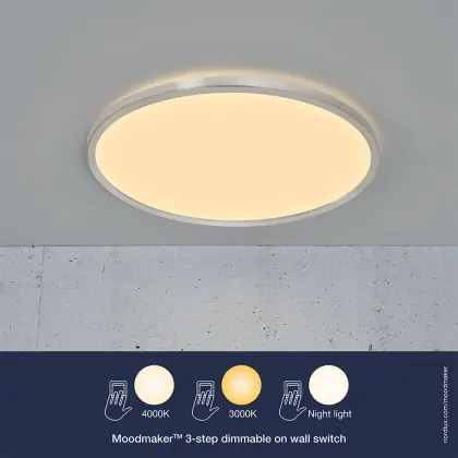 Beschrijving Nordlux LED Plafondlamp Oja 42 Zilver 19W 2100lm 120D - 830-840 CCT | Night Mode - IP20