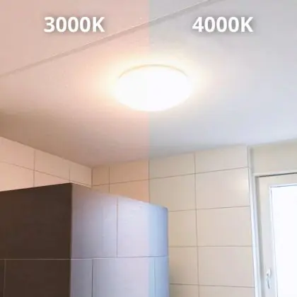 Denk ook goed na over de plaats waar je jouw nieuwe LED plafondverlichting wil ophangen, in combinatie met de juiste kleurtemperatuur. Zo geven 2700 Kelvin (extra warm wit) en 3000 Kelvin (warm wit) wat zachter en aangenamer licht. Deze tint is daarom goed geschikt voor gezellige buitenplaatsen of algemene ruimtes zoals een gang, lift, hal of overloop. 4000 Kelvin (koel wit) oogt qua tint wat feller en frisser en is daarom niet echt geschikt als sfeerverlichting, maar vooral als functionele verlichting. Denk daarbij aan vergaderzalen, gymzalen, werkkamers etc. Deze LED plafondlamp heeft als kleurtemperatuur: 4000K - Koel Wit. Wist je dat het online kopen van LED plafondlampen bij Lampdirect als zakelijke klant extra voordelen met zich meebrengt? Lees er hier alles over.