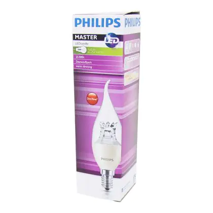 Beschrijving Philips MASTER LED Kaars E14 Gebogen-tip Kroon Helder 2.8W 250lm - 822-827 Dim To Warm | Dimbaar - Vervangt 25W
