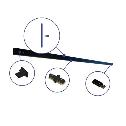 Beschrijving Rail Set 1-Fase 2 Meter Zwart | incl. Eindkap, Voedingsconnector en I-Verbindingsstuk